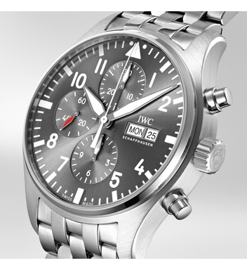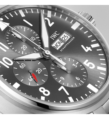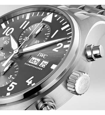 A bezel polished to a mirror finish with a slate-coloured dial: this chronograph, inspired by the legendary Supermarine Spitfire, is both sporty and elegant.
