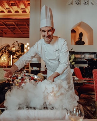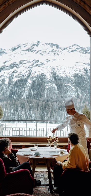 “With my Magdalena crew, I was a guest chef at the Gourmet Festival in Badrutt’s Palace. We had an extremely good time as a team – an experience that has left a lasting impression. Before that, I only knew the hotel superficially from previous jobs, but actually cooking there, staying there, and experiencing the place so closely was something completely different. An afternoon tea in the lobby, sitting, watching what’s happening around me – that has a special atmosphere. And culinarily, I really like exactly these classics on the menu. The club sandwich is very well made, fresh, by no means dry, slightly crispy, beautifully balanced. And the first-class Kaiserschmarrn is one of my absolute favourite dishes anyway. Generous, beautifully presented, with plums and ice cream. Plus, there’s a team that is incredibly warm and at the same time extremely professional.”