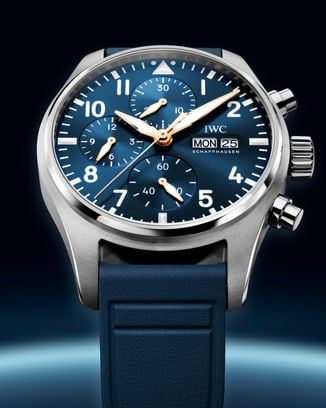 Weisse Ziffern und Indizes sowie vergoldete Zeiger, die mit Super-LumiNova® befüllt sind, stehen für sportliche Eleganz. Der getönte Saphirglasboden zeigt eine liebevoll gestaltete Darstellung des kleinen Prinzen, umgeben von der Aufschrift «Le Petit Prince», einem Planeten und zwei Sternen. Angetrieben wird die Pilot’s Watch Chronograph 41 Le Petit Prince vom IWC-Manufakturkaliber 69385, einem mechanischen Chronographenwerk in klassischer Kolonnenradbauweise mit einer Gangreserve von 46 Stunden.
