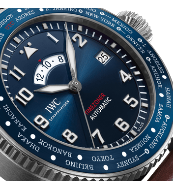 For the first time, IWC presents the useful Timezoner function in the design of its “Le Petit Prince” editions, with a striking blue dial and a blue ceramic rotating bezel.